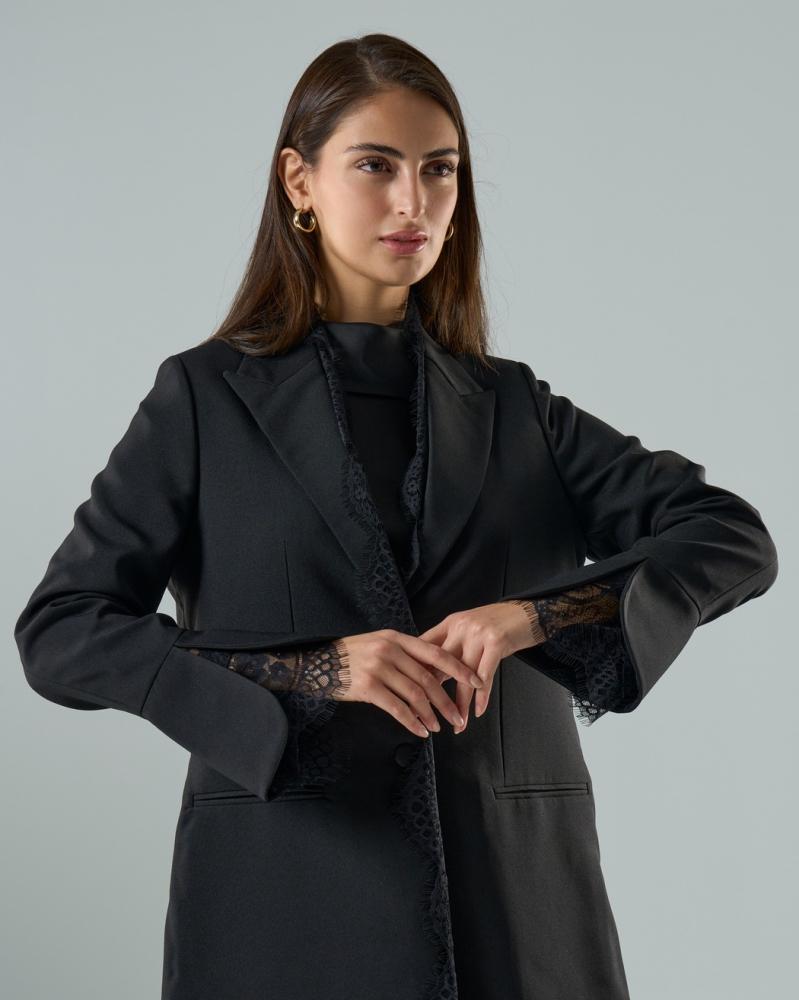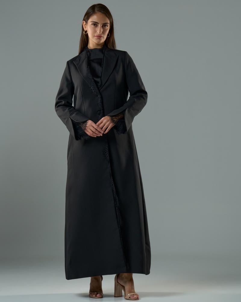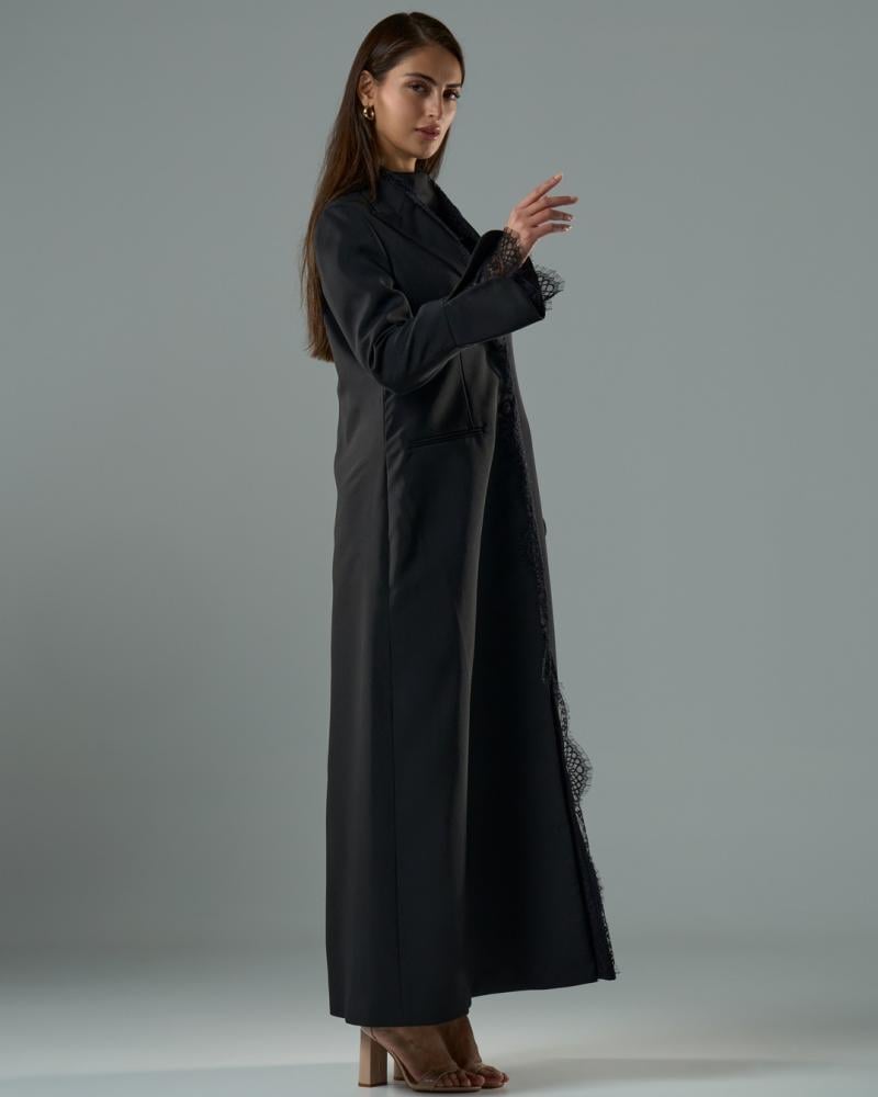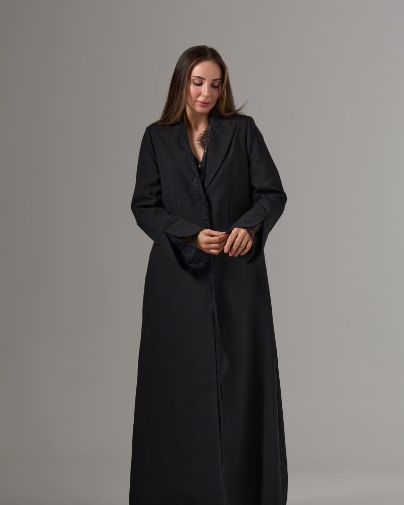 An exceptional abaya crafted from the finest luxurious crepe and exquisite lace, blending elegance and femininity in a truly captivating design.